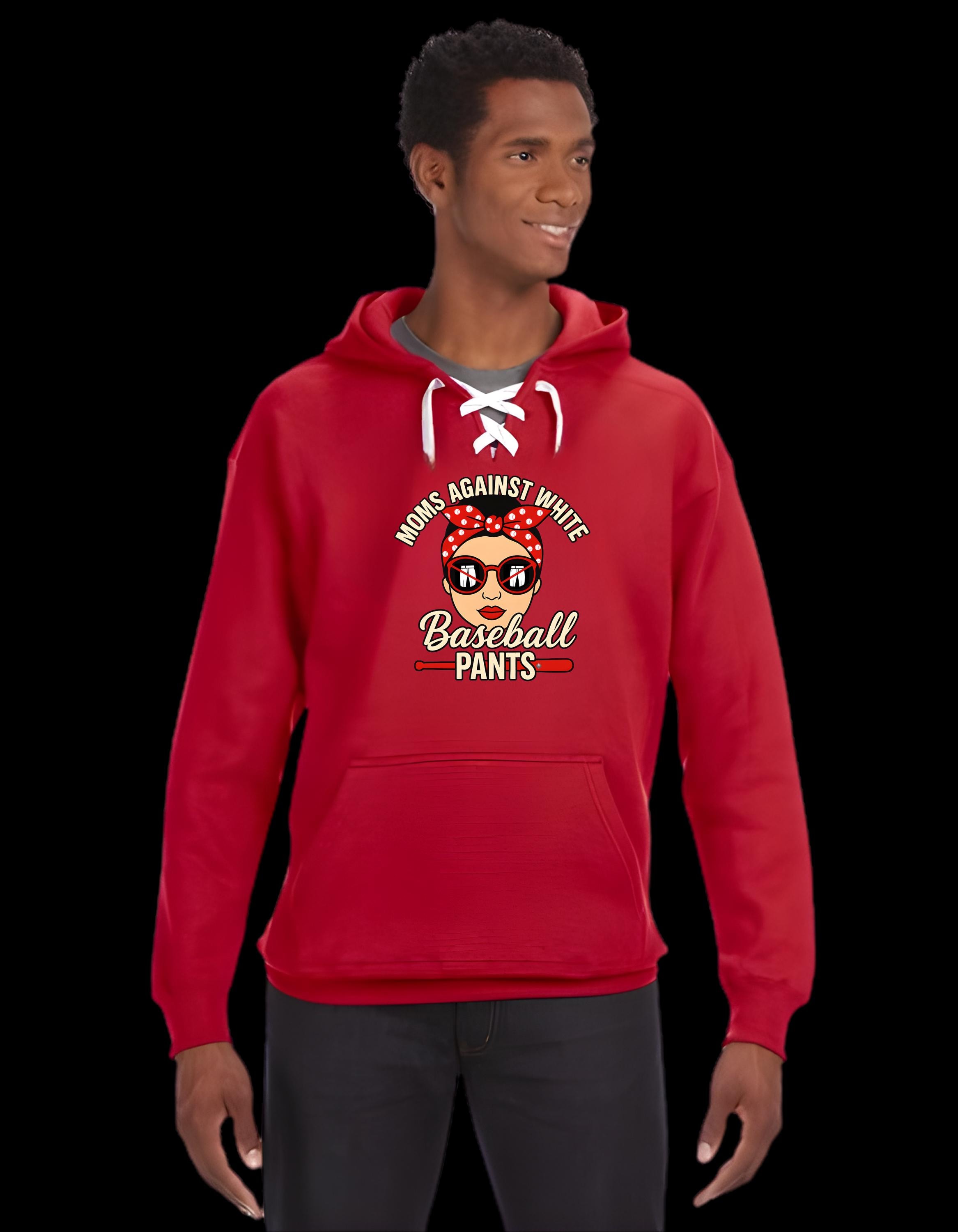 Mud stains. Red clay. Grass streaks. Laundry battles you never signed up for. The Moms Against White Baseball Pants Adult Sport Lace Hooded Sweatshirt is for the real MVPs — the moms fighting the never-ending war against impossible stains.