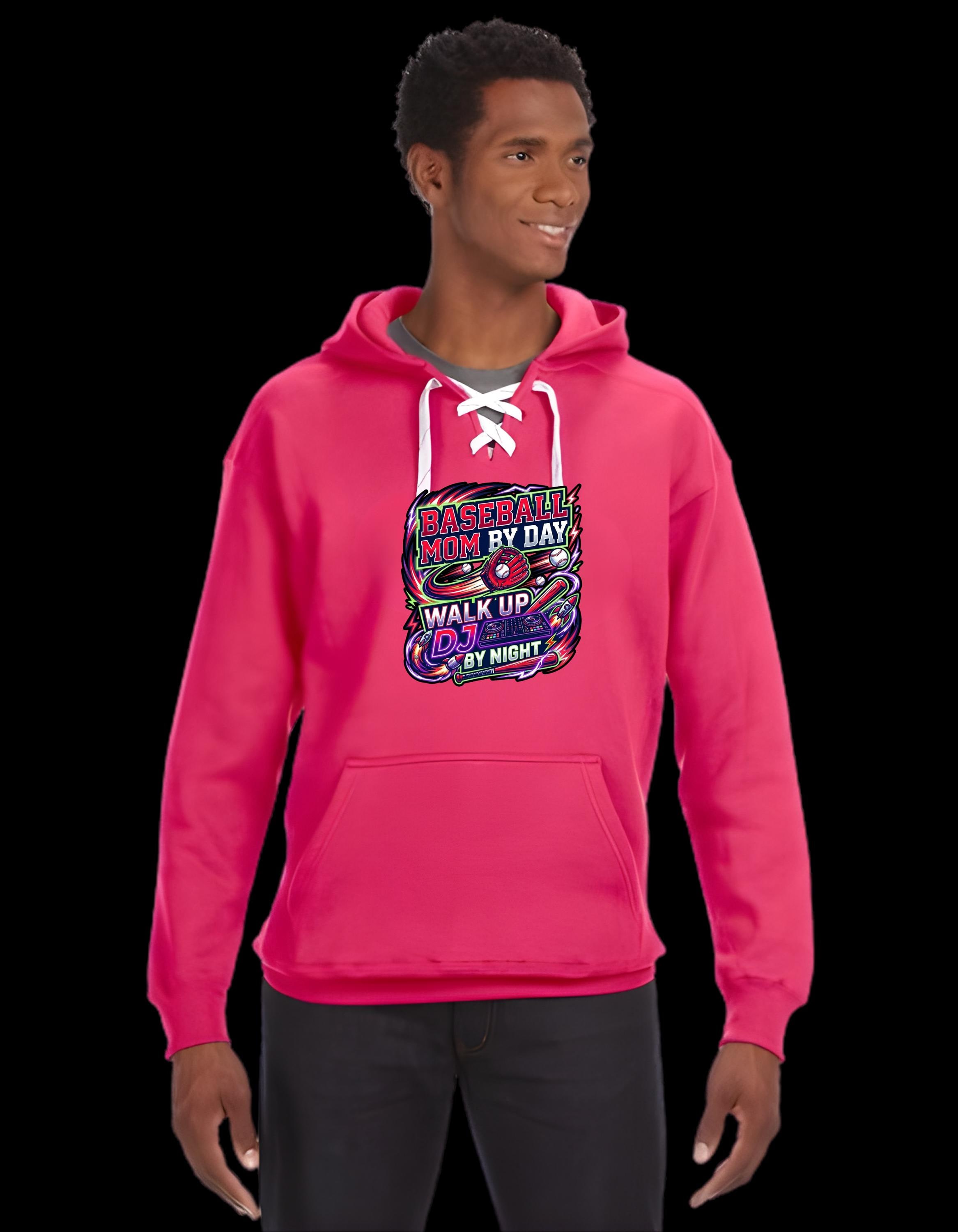 Sun up to sun down, you’re running the show. By day, you’re hauling chairs, passing out snacks, and cheering from the bleachers. By night? You’re curating the ultimate walk-up playlist like the sideline DJ legend you are. The Baseball Mom By Day, Walk-Up DJ By Night Adult Sport Lace Hooded Sweatshirt celebrates the multitasking MVP behind the scenes.