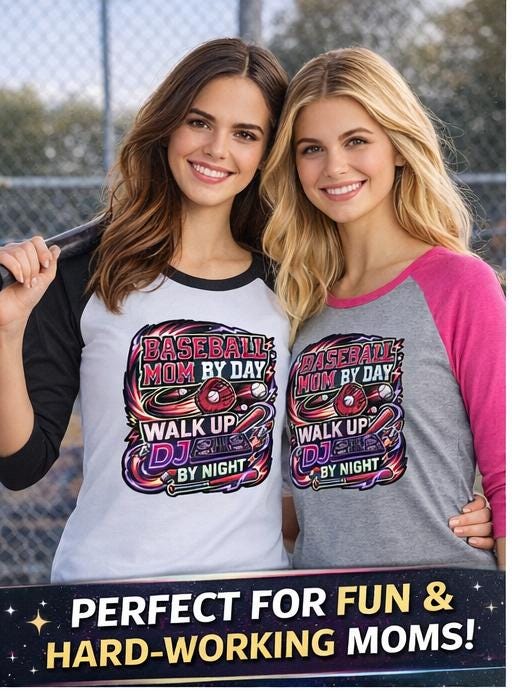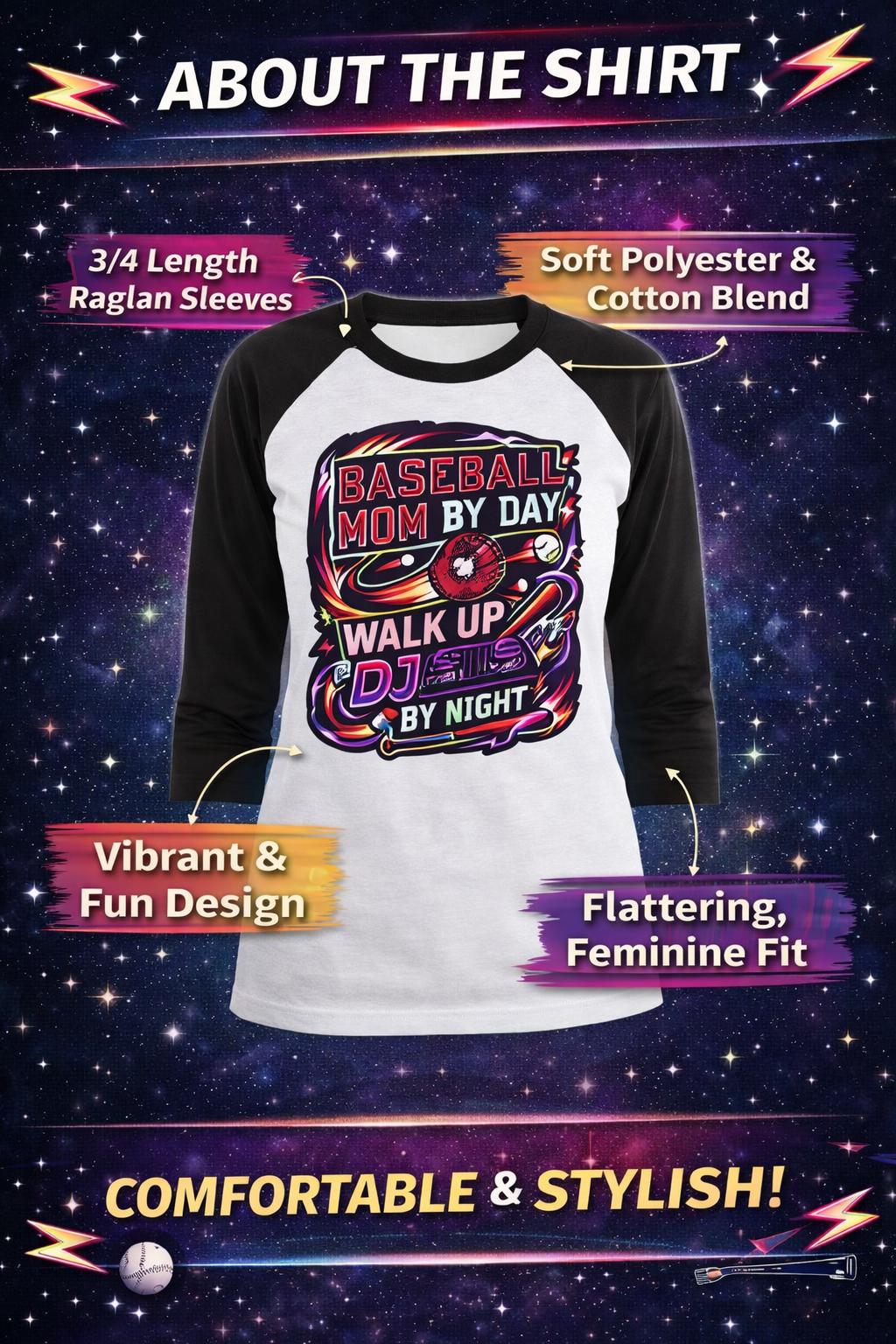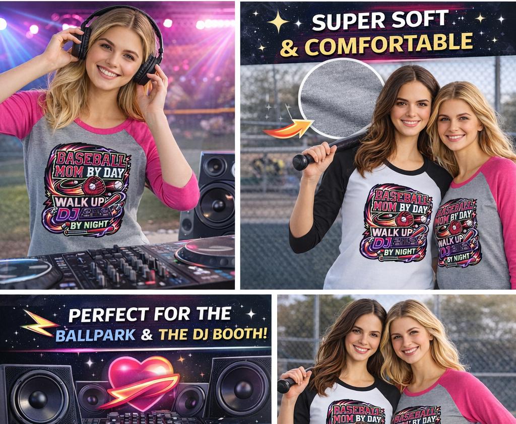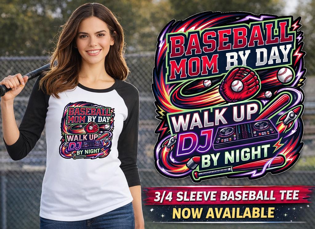 By day, you’re hauling chairs, packing snacks, and cheering louder than anyone in the stands. By night? You’re curating the perfect walk-up playlist and setting the vibe for every at-bat. The Baseball Mom By Day, Walk-Up DJ By Night Women’s Perfect Tri® 3/4-Sleeve Raglan celebrates the multitasking MVP behind the music and the memories.