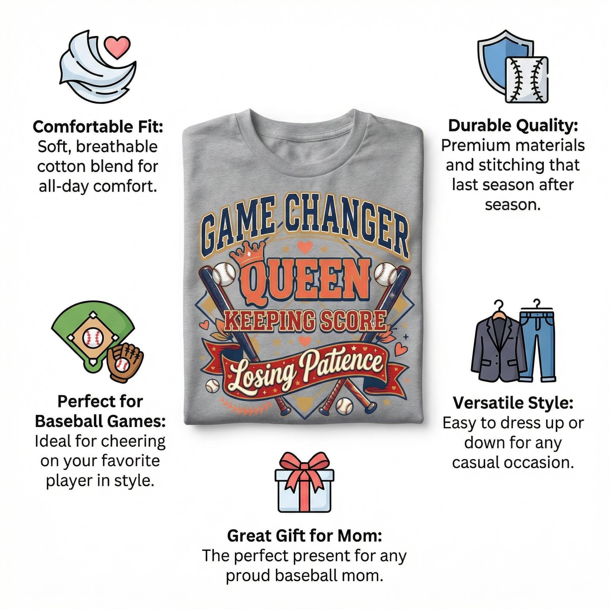She’s got the lineup memorized, the pitch count tracked, and the scorebook updated — but her patience? Running low by the third inning. The Game Changer Queen – Keeping Score, Losing Patience Women’s Perfect Tri® 3/4-Sleeve Raglan is made for the mom who knows the game, knows the rules… and definitely knows when the call was wrong.